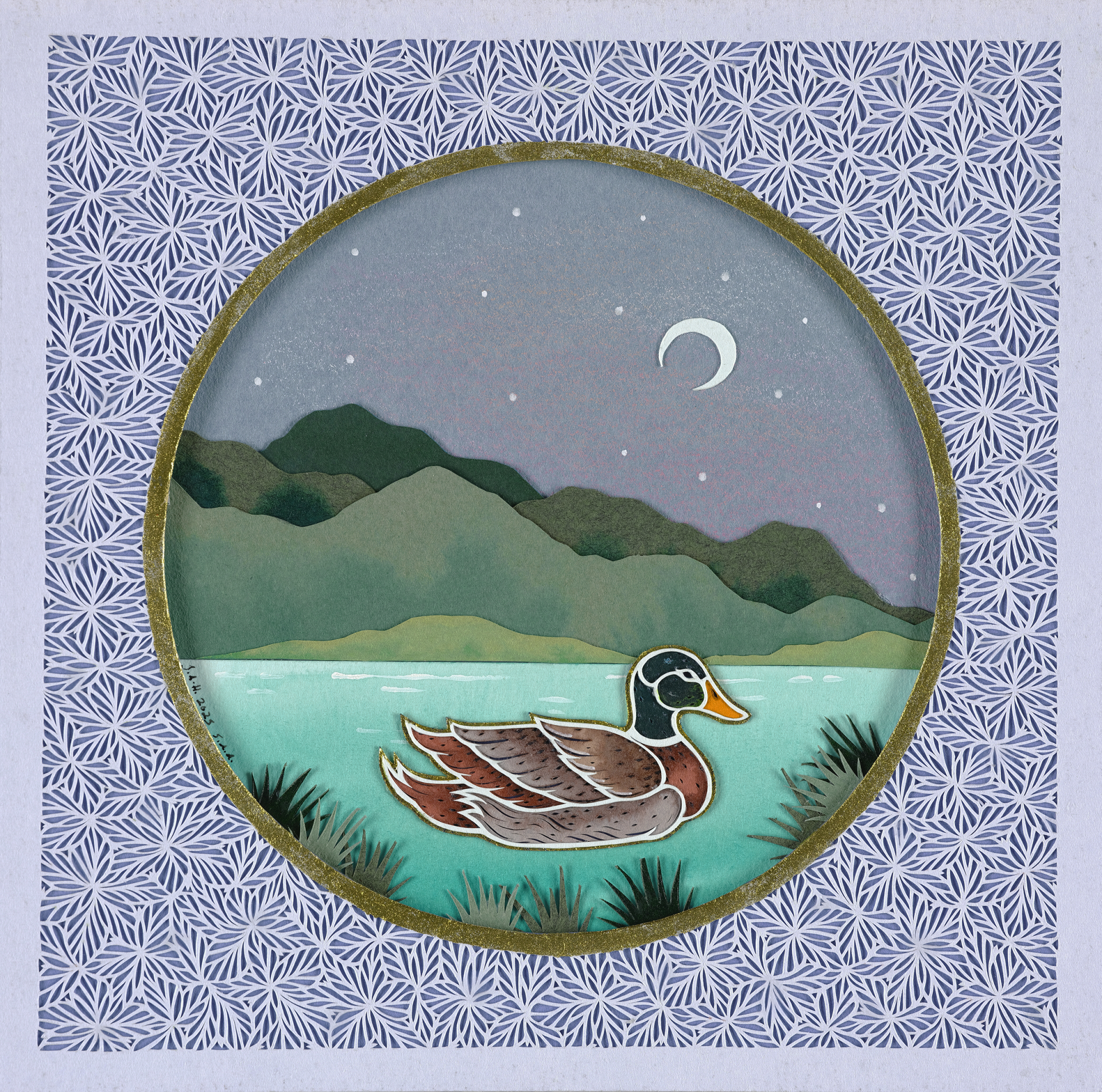 Hand cut Layered Paper by Jennifer Hudson 6″ x 6″ (8″ x 8″ Framed)